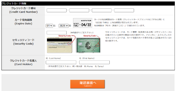 利用できるのはVISA、Master Card、American Express、Dinersの4社です。